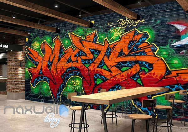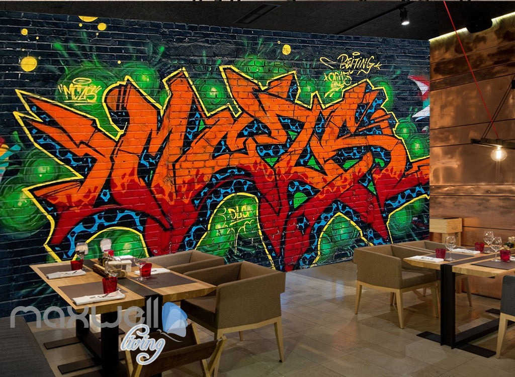 Graffiti Fire Letters Green Blue Wall Murals Wallpaper Art Decals Print Decor IDCWP-TY-000160
