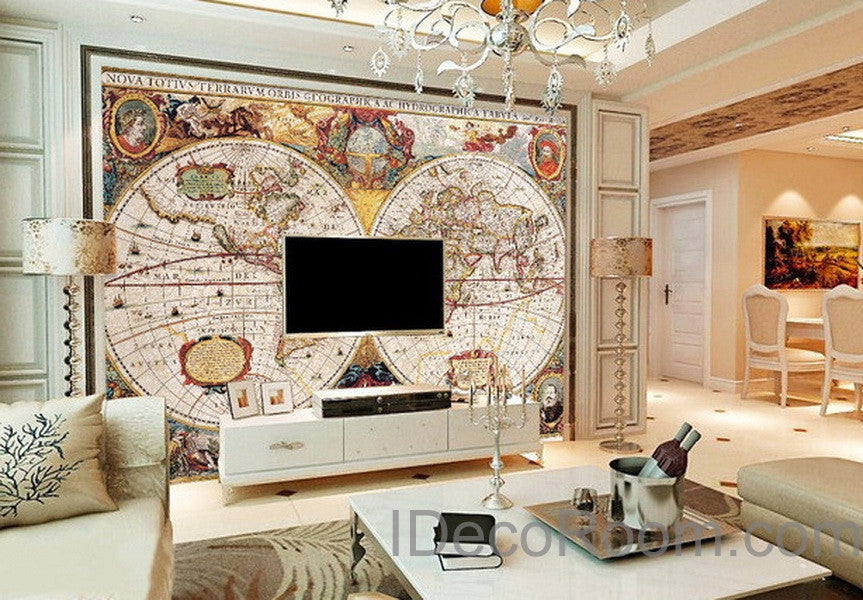 Vintage HD World Map Wallpaper Wall Decals Wall Art Print Mural Home Decor Office Business Indoor Deco