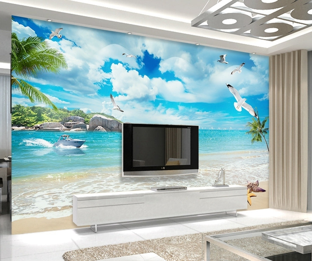 3D Beach Landscape Wallpaper Decorative Painting Wallpaper IDCWP-DZ-000042