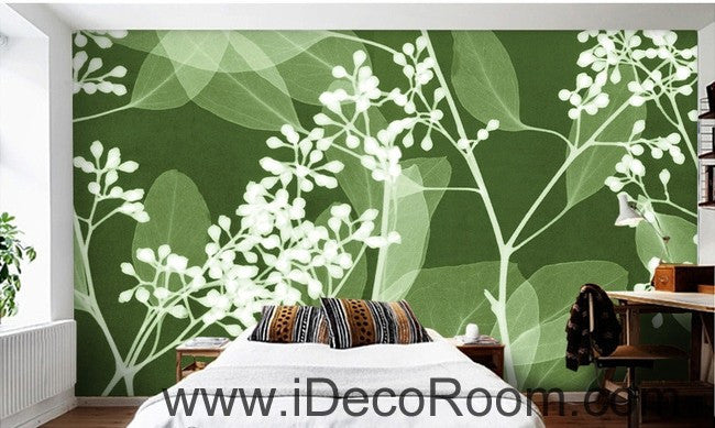 Green Grass Wild Flower Leaves Illustration IDCWP-000080 Wallpaper Wall Decals Wall Art Print Mural Home Decor Gift