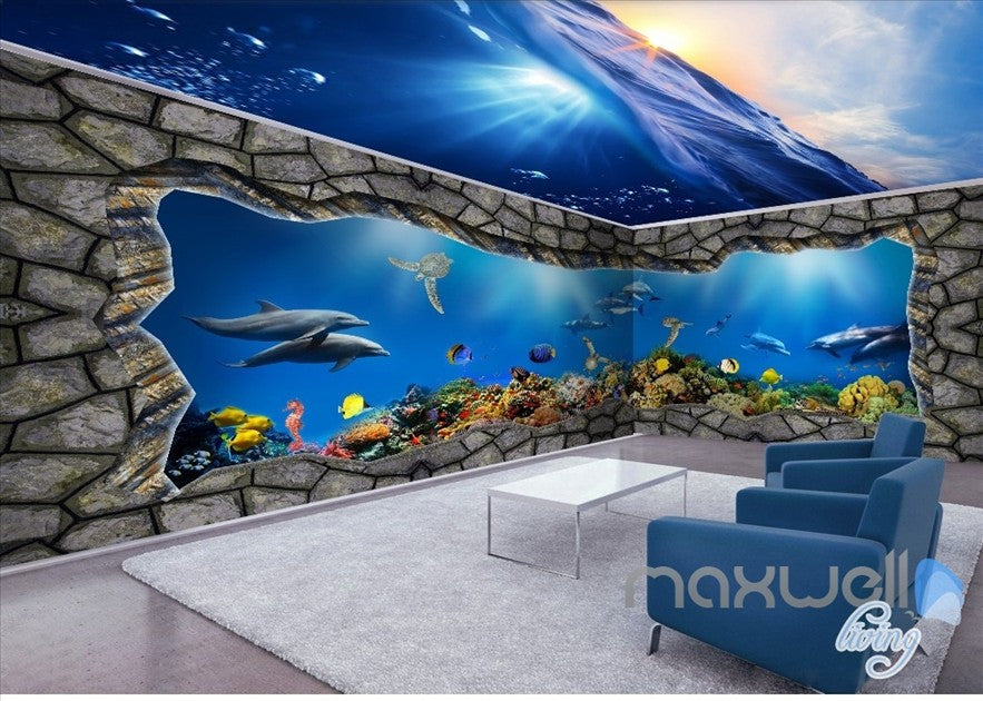 Underwater sea world 3D entire room wallpaper wall mural decal IDCQW-000057