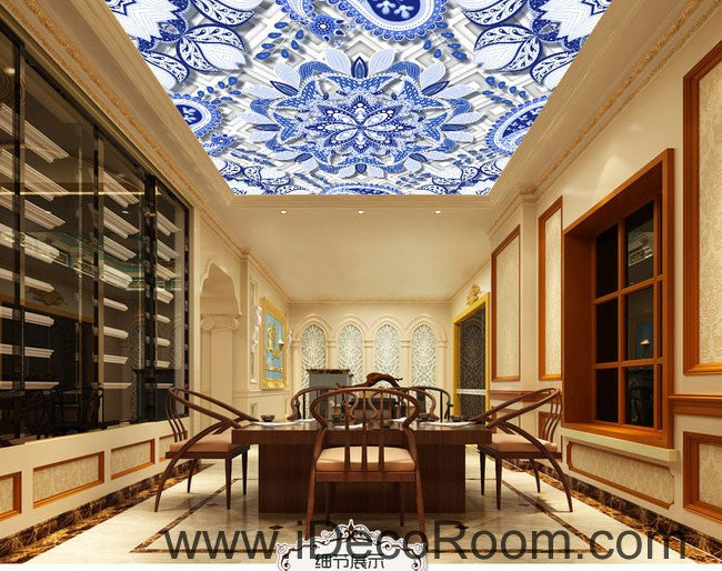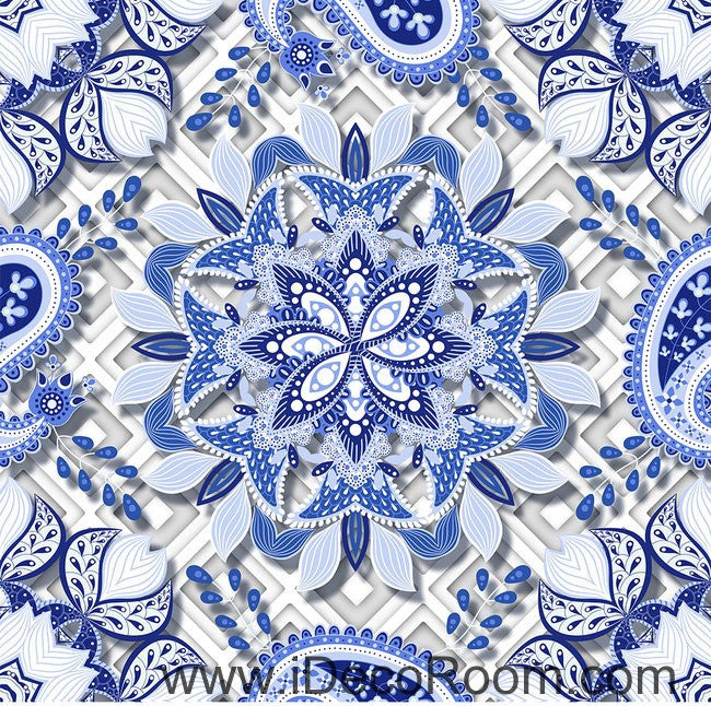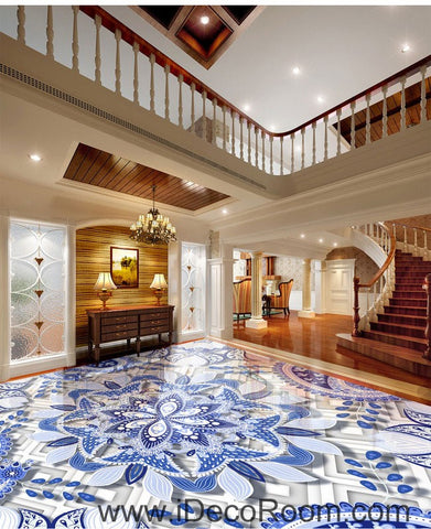 Blue and White Porcelain Flower 00084 Floor Decals 3D Wallpaper Wall Mural Stickers Print Art Bathroom Decor Living Room Kitchen Waterproof Business Home Office Gift