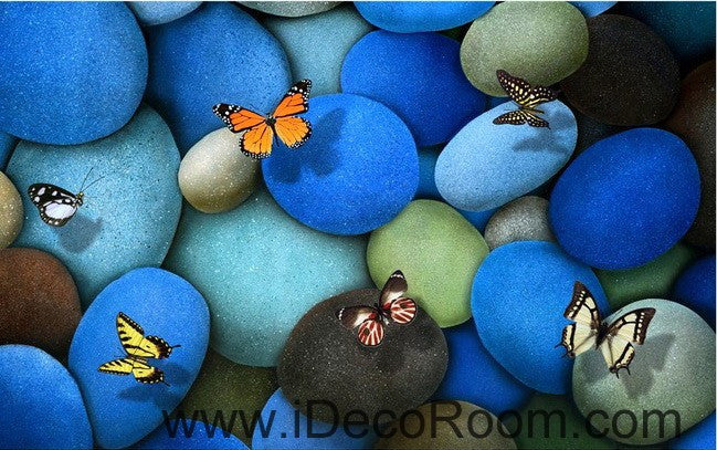 Blue Butterflies Stone 00016 Floor Decals 3D Wallpaper Wall Mural Stickers Print Art Bathroom Decor Living Room Kitchen Waterproof Business Home Office Gift