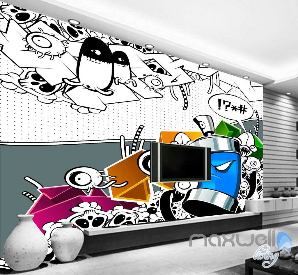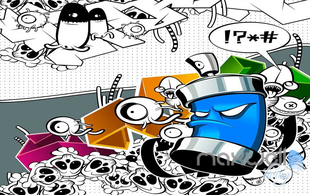 3D Graffiti Angry Bin Wall Paper Murals Art Print Wall Decals Decor IDCWP-TY-000002