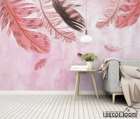 Modern minimalist pink feathers Nordic wallpaper wall muralss IDCWP-HL-000653