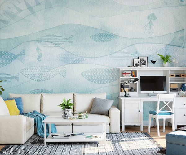 modern minimalistic blue mediterranean style Wallpaper IDCWP-DZ-000178