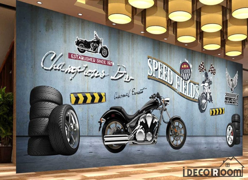 Metal Wall 3D Motorbike Wheels Restaurant Art Wall Murals Wallpaper Decals Prints Decor IDCWP-JB-001106