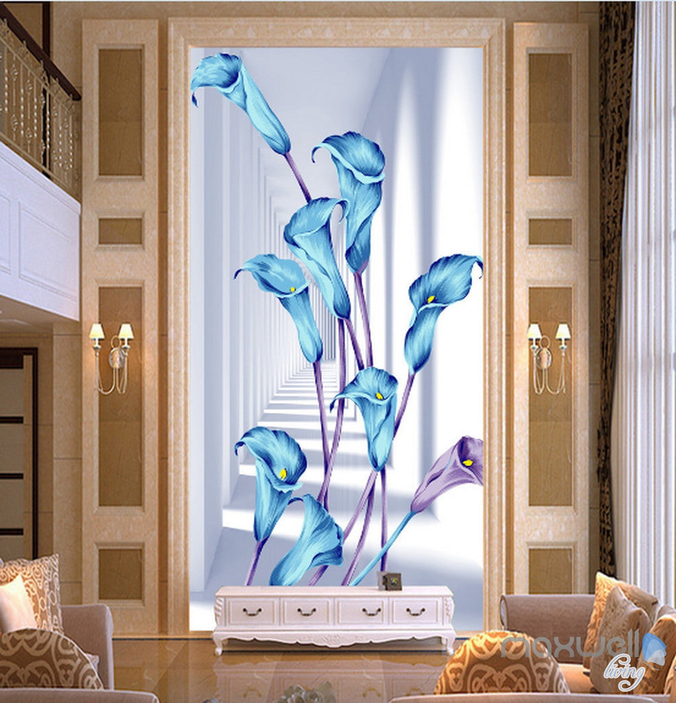 3D Blue Flowers Corridor Entrance Wall Mural Decals Art Print Wallpaper 071