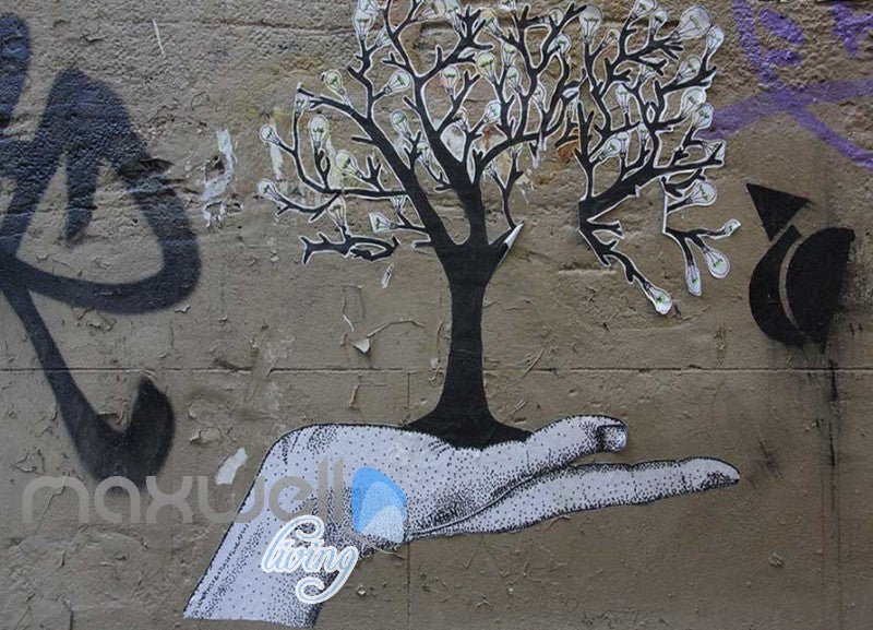 3D Graffiti Hand Bulb Tree Street Art Wall Murals Wallpaper Decals Prints Decor IDCWP-TY-000235
