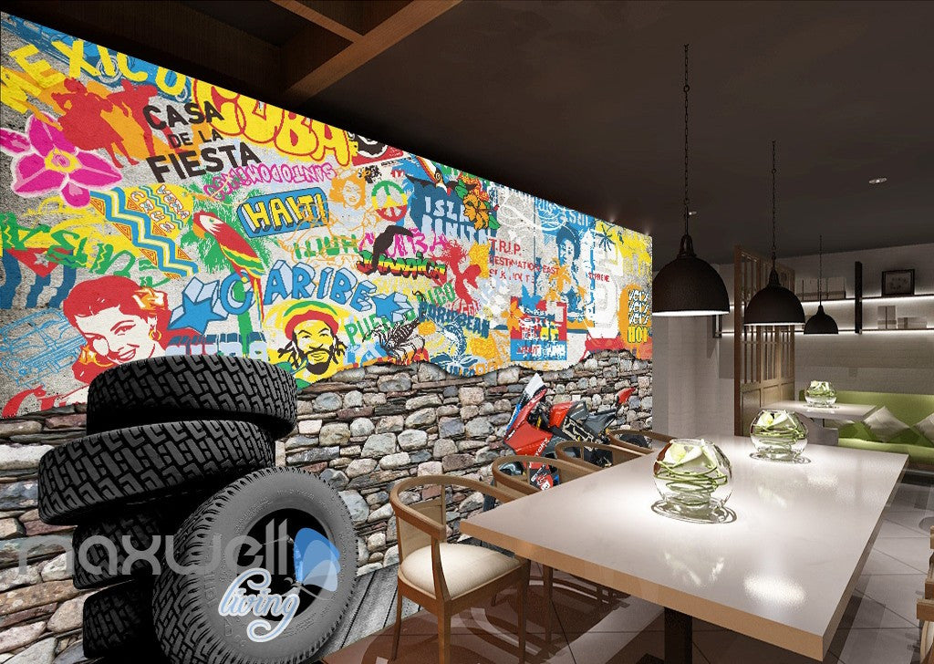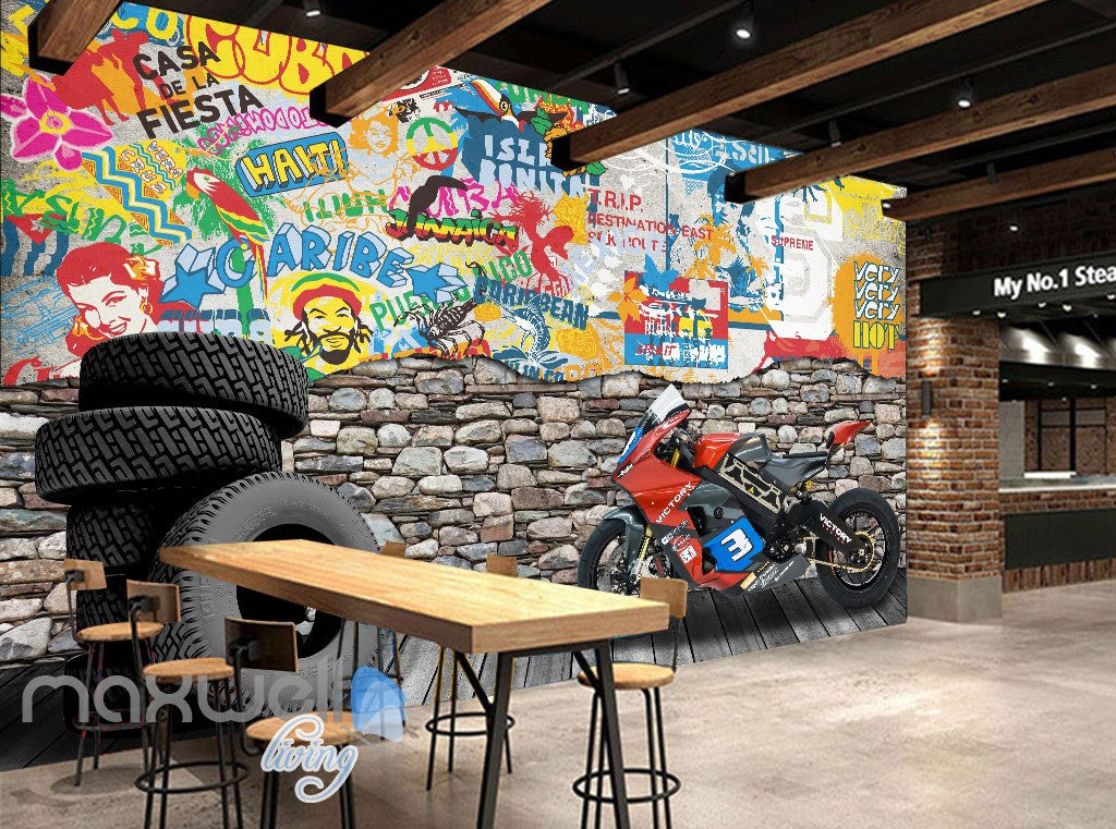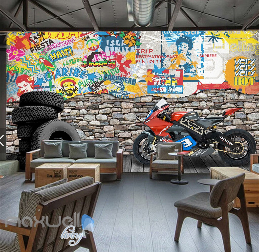 3D Graffiti Motor Wheels Rock Wall Murals Wallpaper Wall Art Decals Decor IDCWP-TY-000111