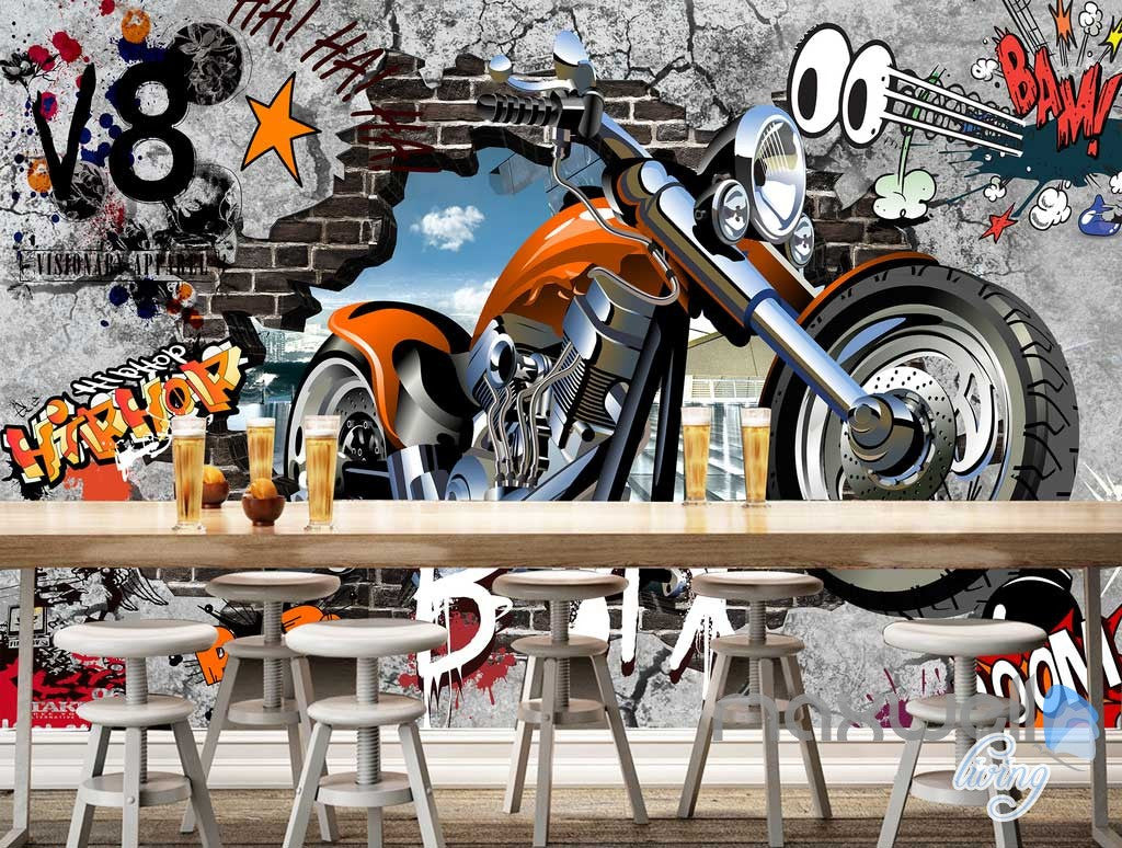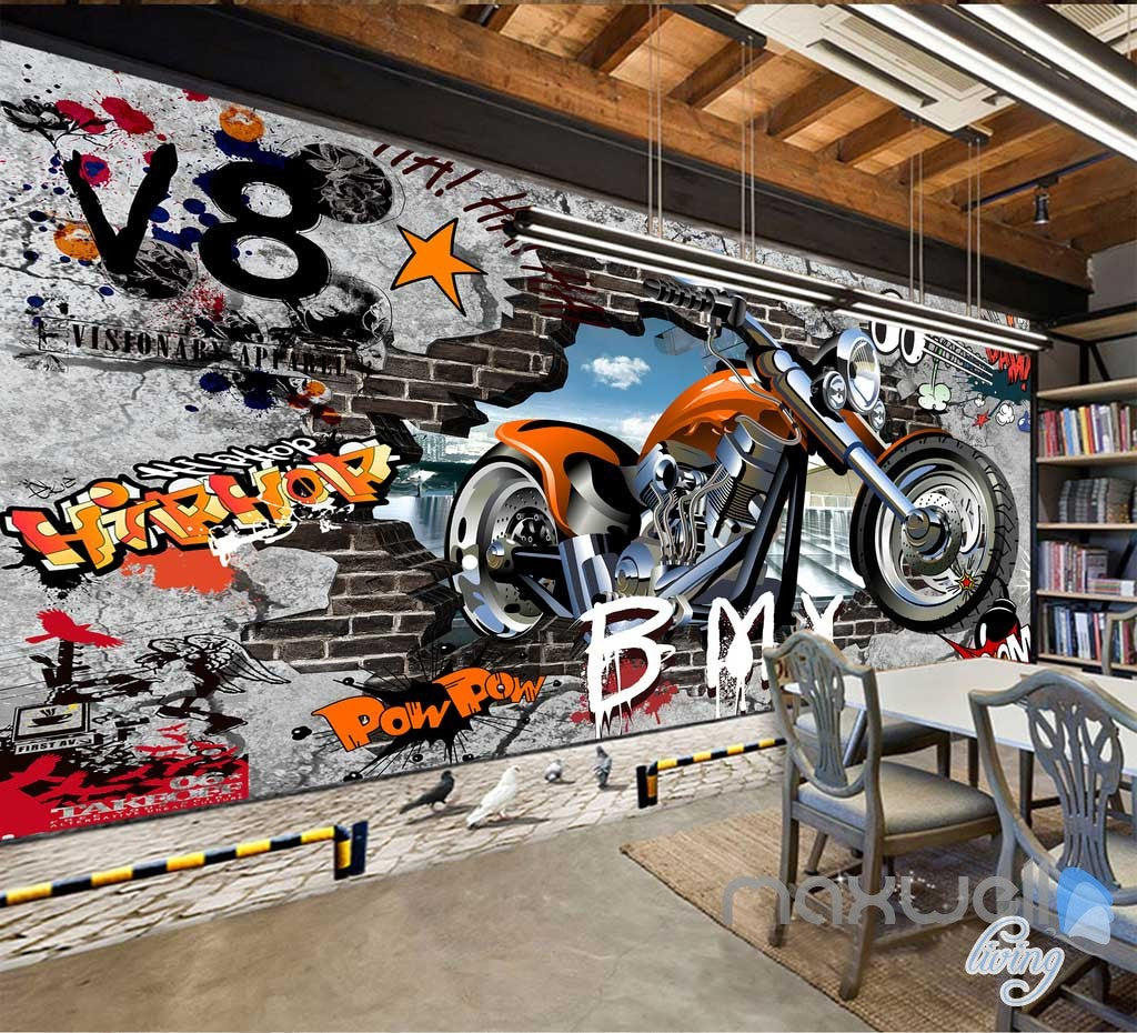 3D Graffiti Motorbike Break Brick Wall Art Murals Paper Print Decals Decor IDCWP-TY-000079
