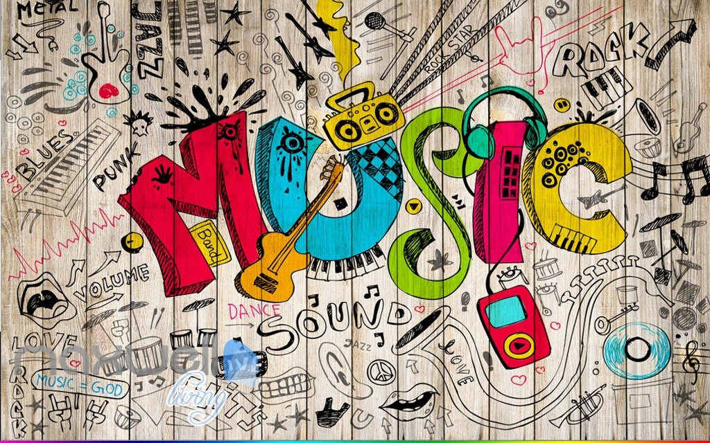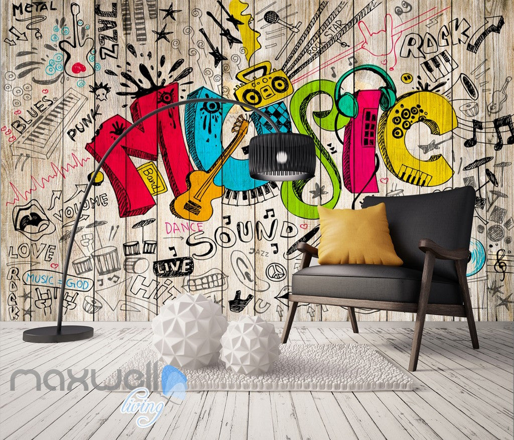 3D Graffiti Music Color Board Wall Murals Wallpaper Wall Art Decals Decor IDCWP-TY-000127