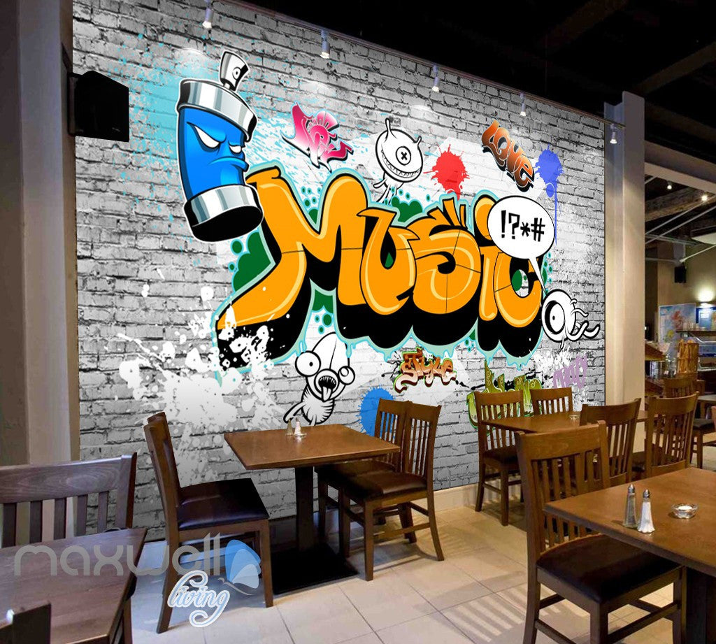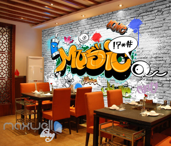 3D Graffiti Music Word Bricks Wall Murals Wallpaper Wall Art Decals Decor IDCWP-TY-000118