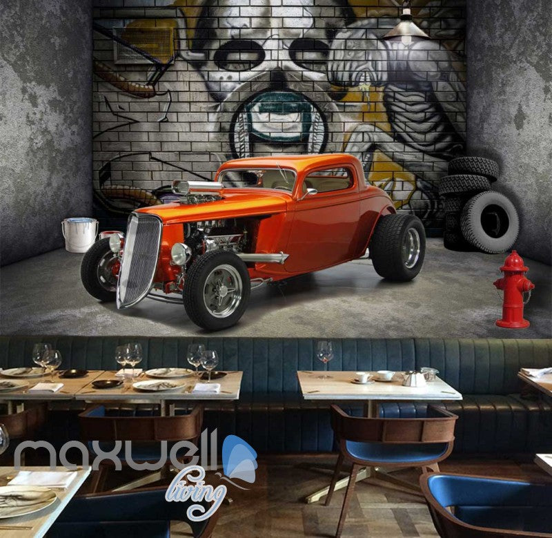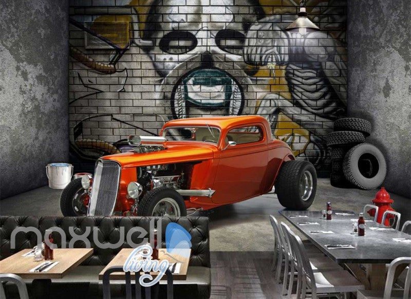 3D Graffiti Retro Car wheel Garage Art Wall Murals Wallpaper Decals Prints Decor IDCWP-TY-000243