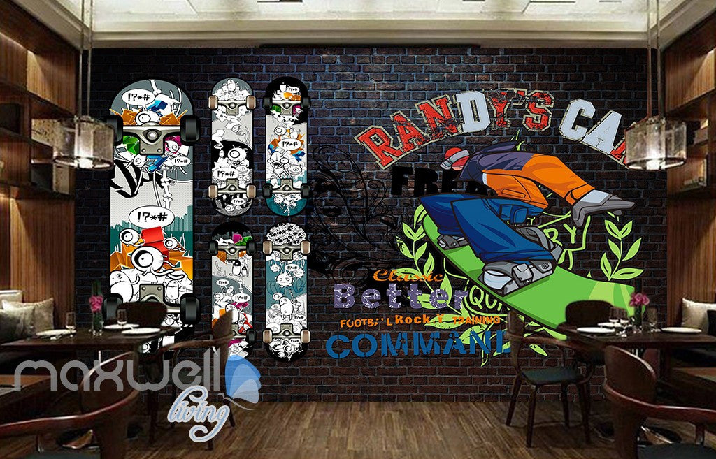 3D Graffiti Surfboard Brick Wall Murals Wallpaper Wall Art Decals Decor IDCWP-TY-000085