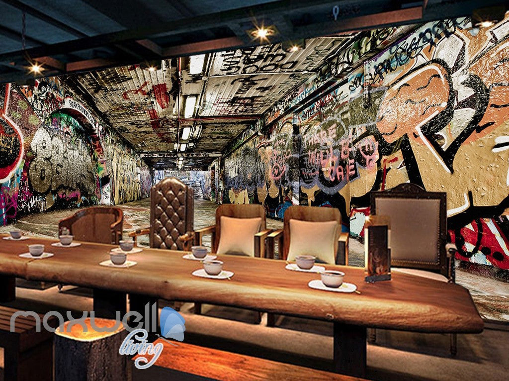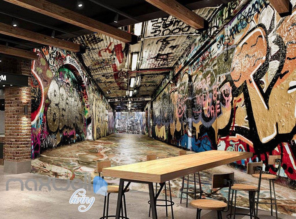 3D Graffiti Underground Tunnel Stair Wall Murals Wallpaper Wall Art Decals Decor IDCWP-TY-000147