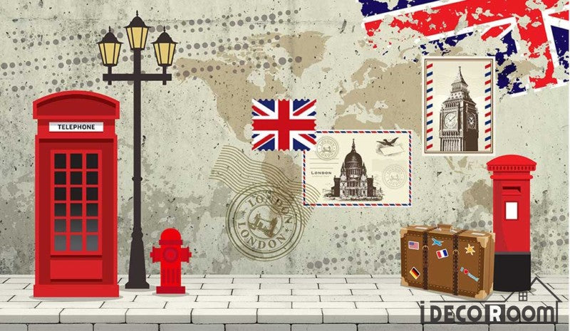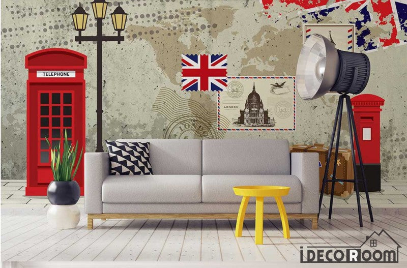 3D London Cabin Phone Letterbox Flag Living Room Bedroom Art Wall Murals Wallpaper Decals Prints Decor IDCWP-JB-001268