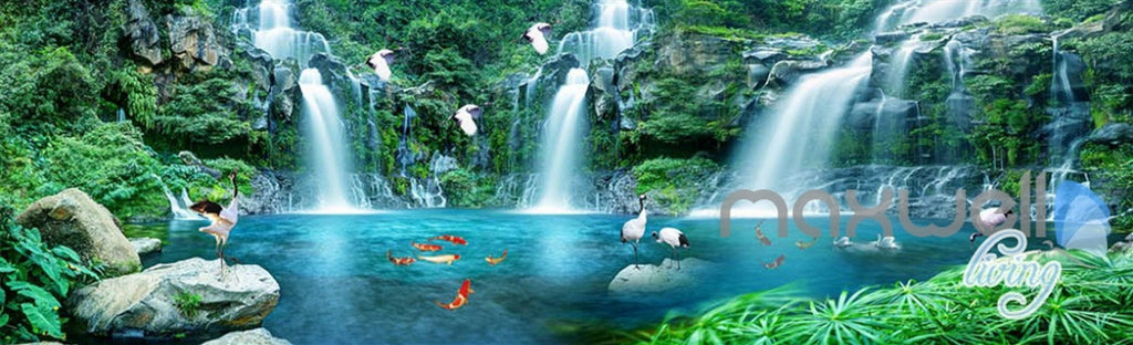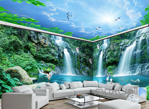 3D Long Waterfall Mountain Blue Sky Mountain Entire Room Wallpaper Wall Mural Art Decor IDCQW-000218