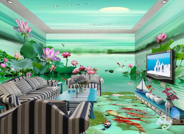 3D Lotus Pond Fish Lake View Entire Living Room Wallpaper Wall Mural Art Decor IDCQW-000191