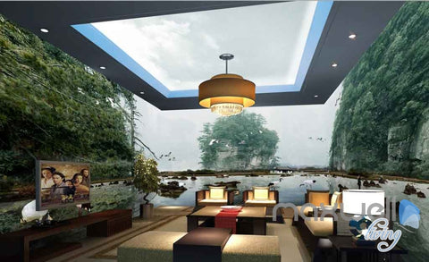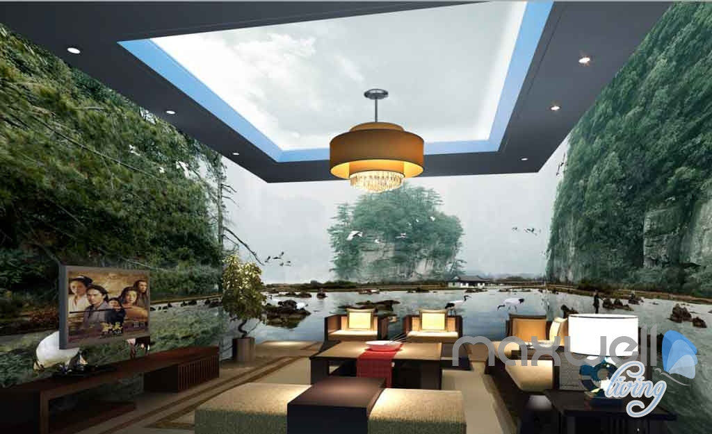 3D Mountain Pool Birds Entire Room Wallpaper Wall Murals Art Prints IDCQW-000107