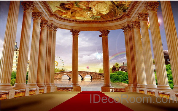 3D Pillar Red Carpet Bridge Veiw Wall paper Wallpaper Wall Decals Wall Art Print Mural Home Decor Indoor Bussiness Office Deco