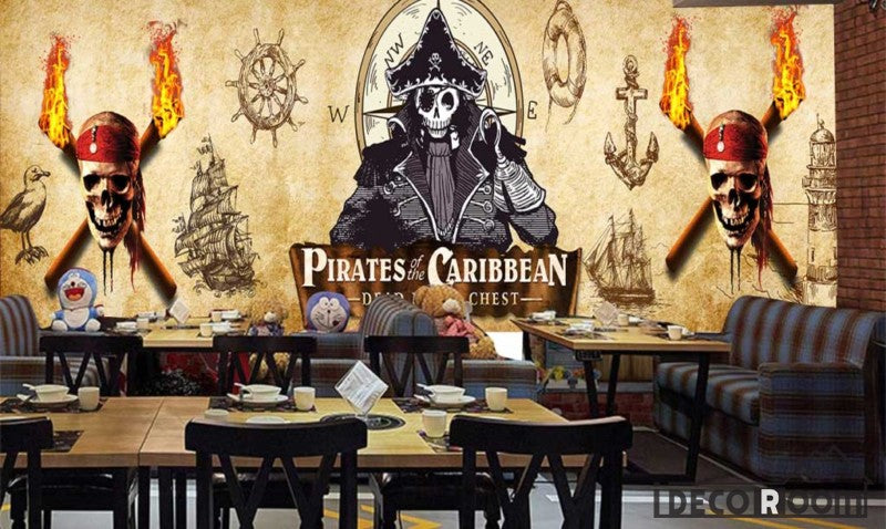 3D Pirate Drawing Fire Restaurant Art Wall Murals Wallpaper Decals Prints Decor IDCWP-JB-001229
