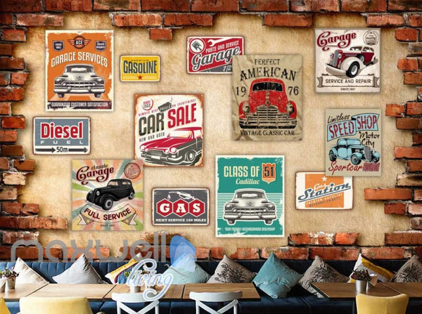 3D Posters Of Cars On Broken Brick Wall Art Wall Murals Wallpaper Decals Prints Decor IDCWP-JB-000653