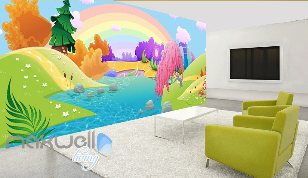 3D Rainbow Fairy Land River Kids Wall Murals Wallpaper Paper Art Print Decor IDCQW-000339