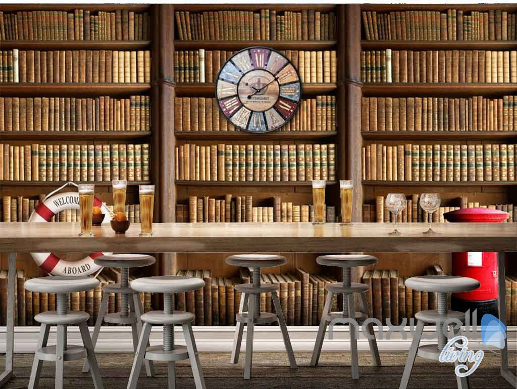 3D Retro Clock Book Shelf Wall Paper Mural Art Print Decals Business Decor IDCWP-SJ-000010