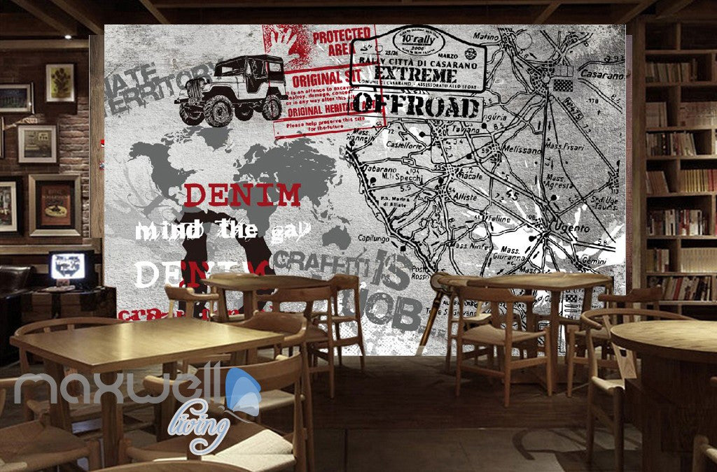 3D Retro Graffiti Denim Offroad Stamp Wall Murals Wallpaper Wall Art Decals Decor IDCWP-TY-000140