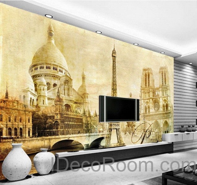 3D Retro Paris Tower Wall paper Wallpaper Wall Decals Wall Art Print Mural Home Decor Indoor Bussiness Office Deco