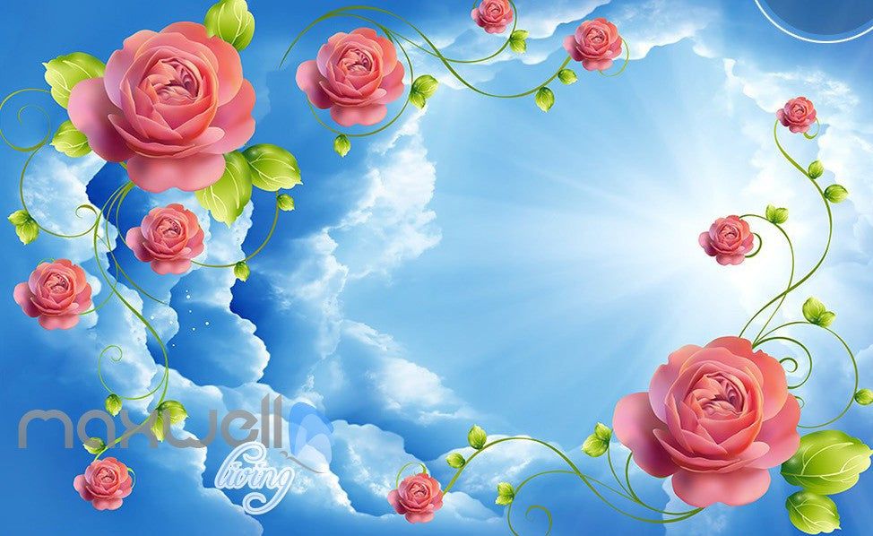 3D Roses Green Wall Entire Room Wall Murals Wallpaper Paper Decals Art Print Decor IDCQW-000333