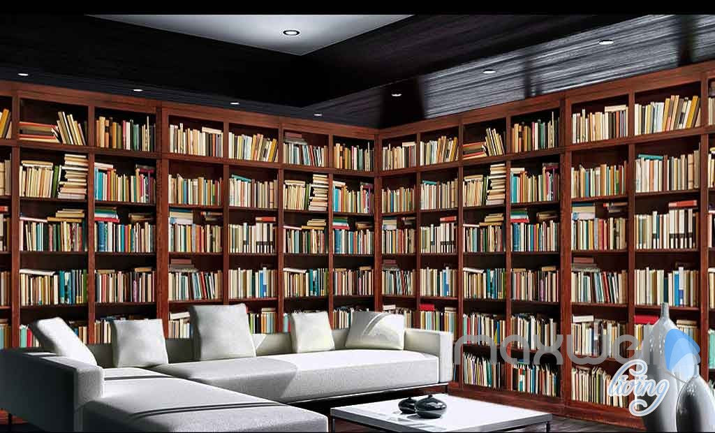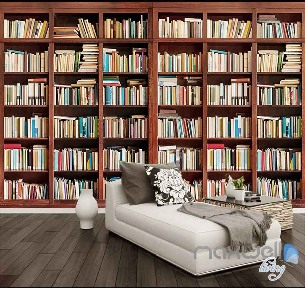 3D Tall Bookshelf Books Display Wall Paper Mural Art Print Decals Office Decor IDCWP-SJ-000014