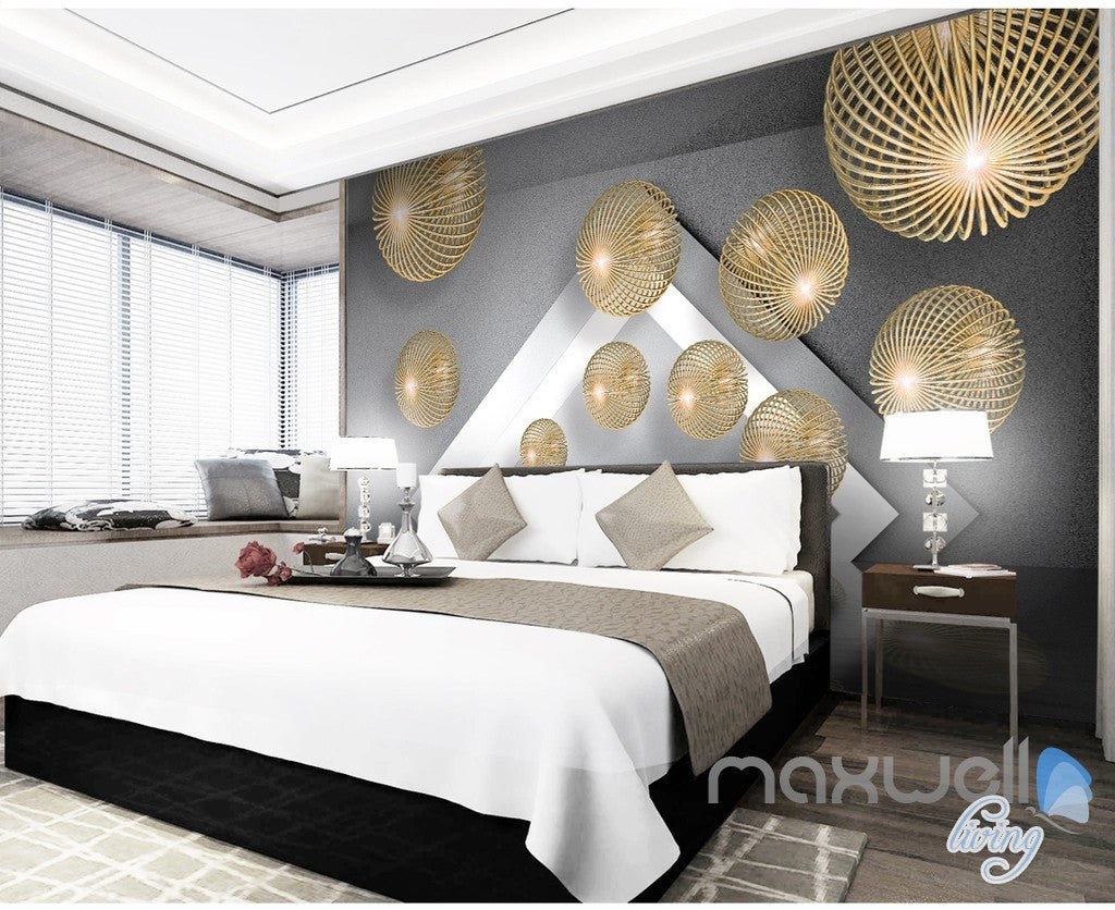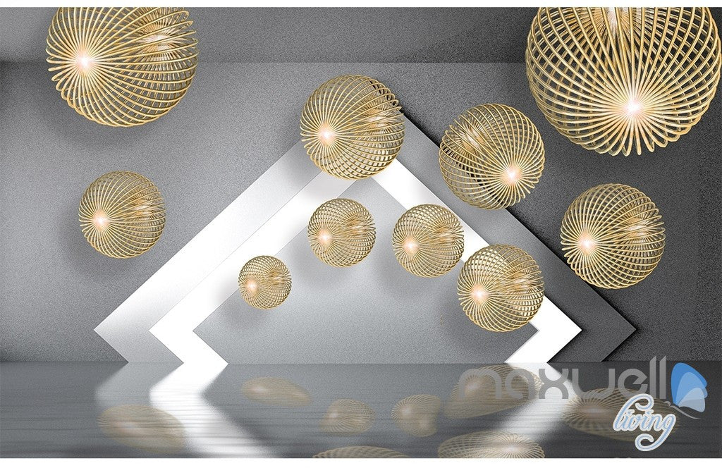 3D Yellow Hollow Ball 5D Wall Paper Mural Modern Art Print Decals Decor IDCWP-3DB-000033