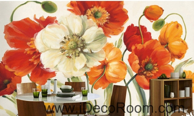 A beautiful dream of fresh and colorful blooming poppy flower painting wall art wall decor mural wallpaper wall IDCWP-000241