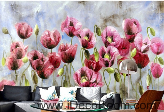 A beautiful dream romantic bloom pink poppy oil painting effect wall art wall decor mural wallpaper wall IDCWP-000158