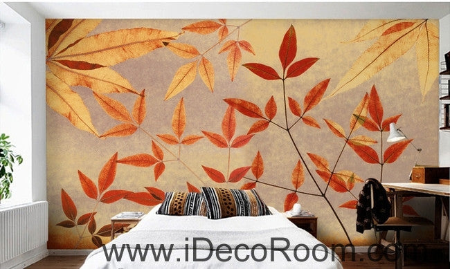 A beautiful retro to do old old maple leaves leaf branches wall art wall decor mural wallpaper wall paper IDCWP-000265