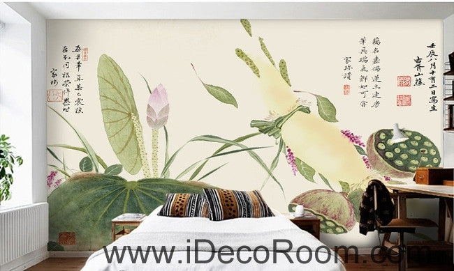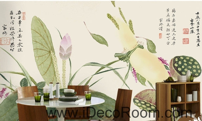 Beautiful and fresh light green lotus lotus leaf lotus flower painting wall art wall decor mural wallpaper wall IDCWP-000117