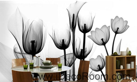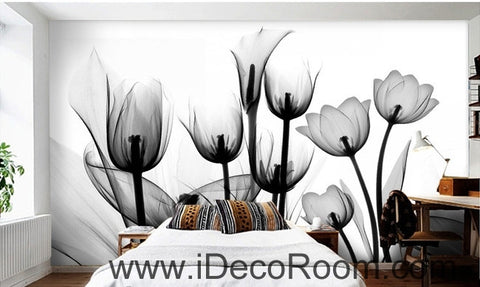 Beautiful dream black and white art in full bloom tulips transparent wall art wall decor mural wallpaper wall IDCWP-000116