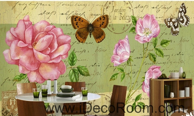 Beautiful dream fresh pink peony rose butterfly flying oil painting effect wall art wall decor mural wallpaper wall IDCWP-000170