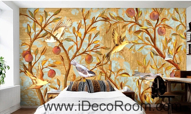 Beautiful dream gold happy on the branches of the bird magpie oil painting effect wall art wall decor mural wallpaper wall IDCWP-000186