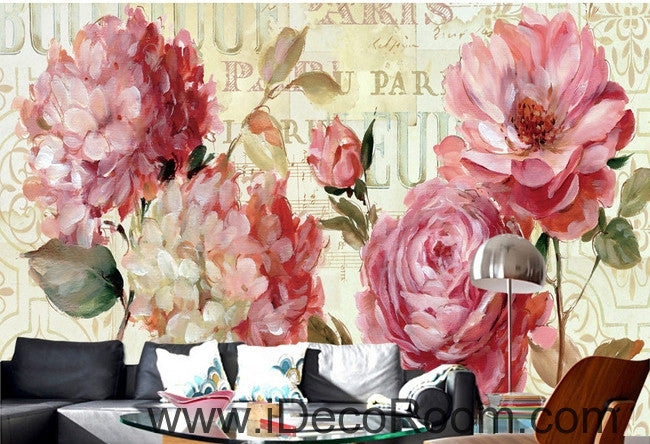 Beautiful dream romantic pink in full bloom peony rose wall art wall decor mural wallpaper wall IDCWP-000245