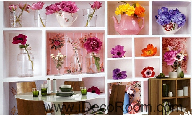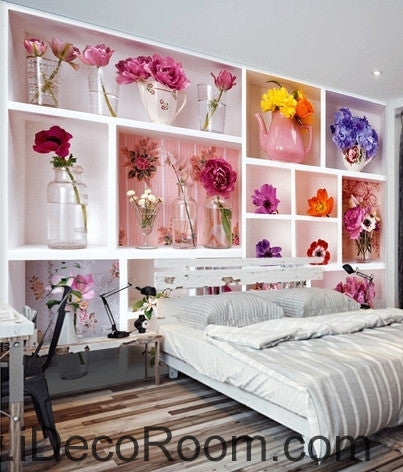 Beautiful fresh white lattice painting splicing flower vase still life wall art wall decor mural wallpaper wall IDCWP-000249