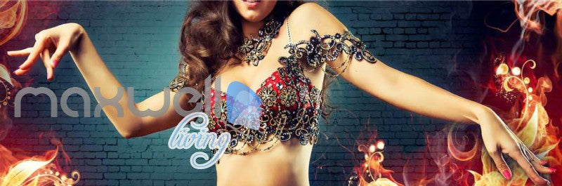 belly dance woman with fire on brick wall Art Wall Murals Wallpaper Decals Prints Decor IDCWP-JB-000448