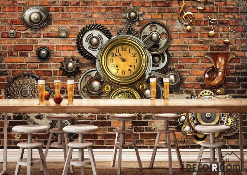 Brick Wall 3D Gear Restaurant Art Wall Murals Wallpaper Decals Prints Decor IDCWP-JB-000956