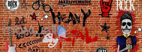Brick Wall With Heavy Metal Symbols Art Wall Murals Wallpaper Decals Prints Decor IDCWP-JB-000855