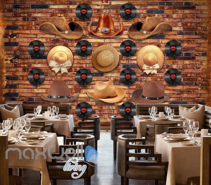 Brick Wall With Vinyl And Cowboy Hats Art Wall Murals Wallpaper Decals Prints Decor IDCWP-JB-000805