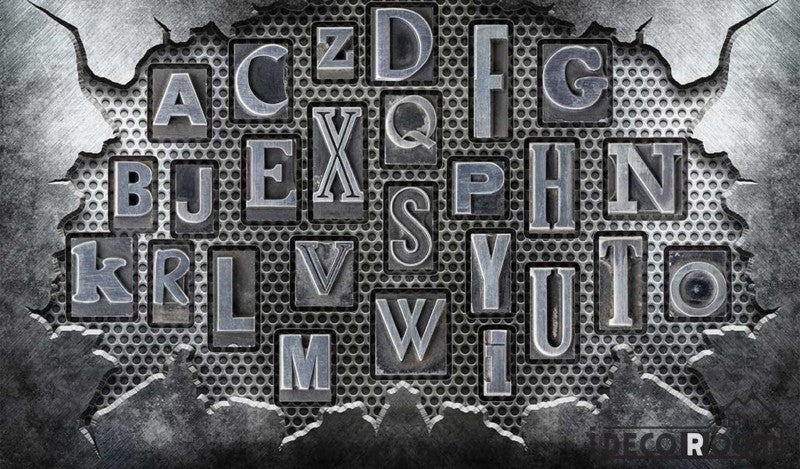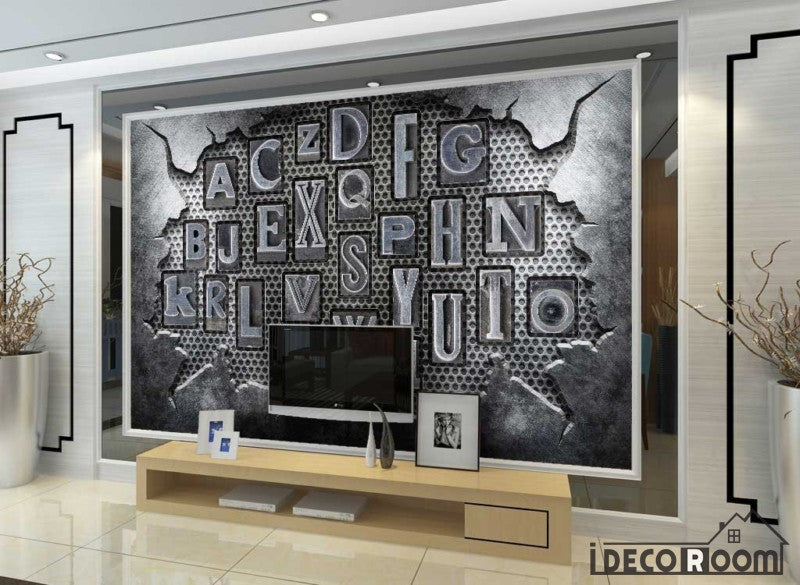 Broken Metal Wall 3D Typography Letters Living Room Restaurant Art Wall Murals Wallpaper Decals Prints Decor IDCWP-JB-001187