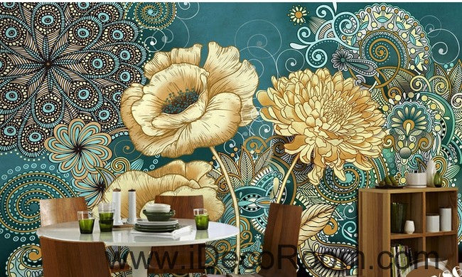 Colorful flower illustration IDCWP-000040 Wallpaper Wall Decals Wall Art Print Mural Home Decor Gift