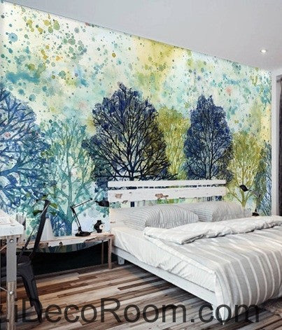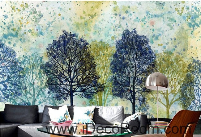 Colorful tree illustration IDCWP-000044 Wallpaper Wall Decals Wall Art Print Mural Home Decor Gift